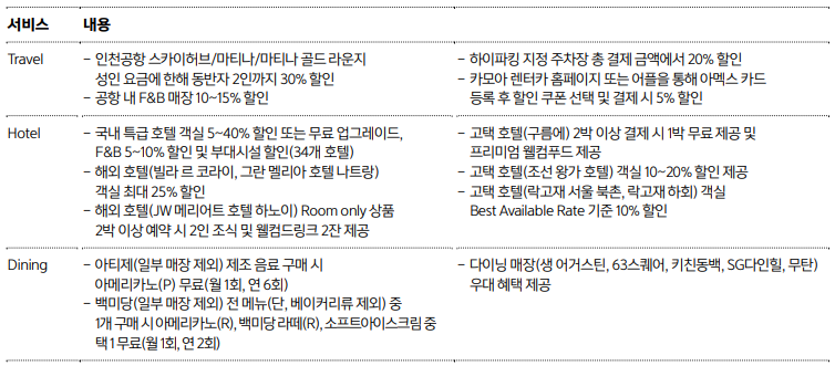 | 전월실적 조건 | 없음 (단, 공항 서비스 30만) |